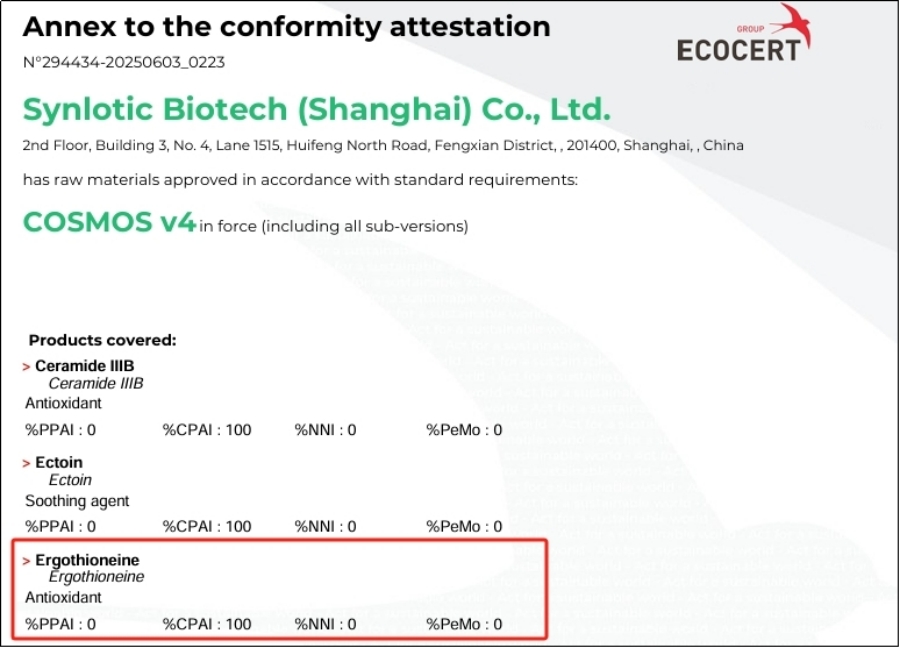 షాంఘై యున్లుయో: ఎర్గోథియోన్ COSMOS సర్టిఫికేషన్ పొందింది